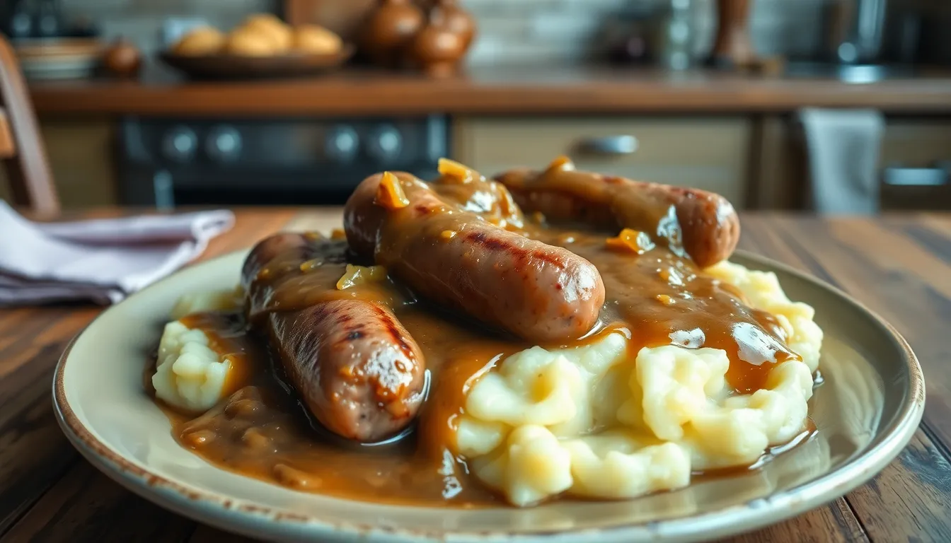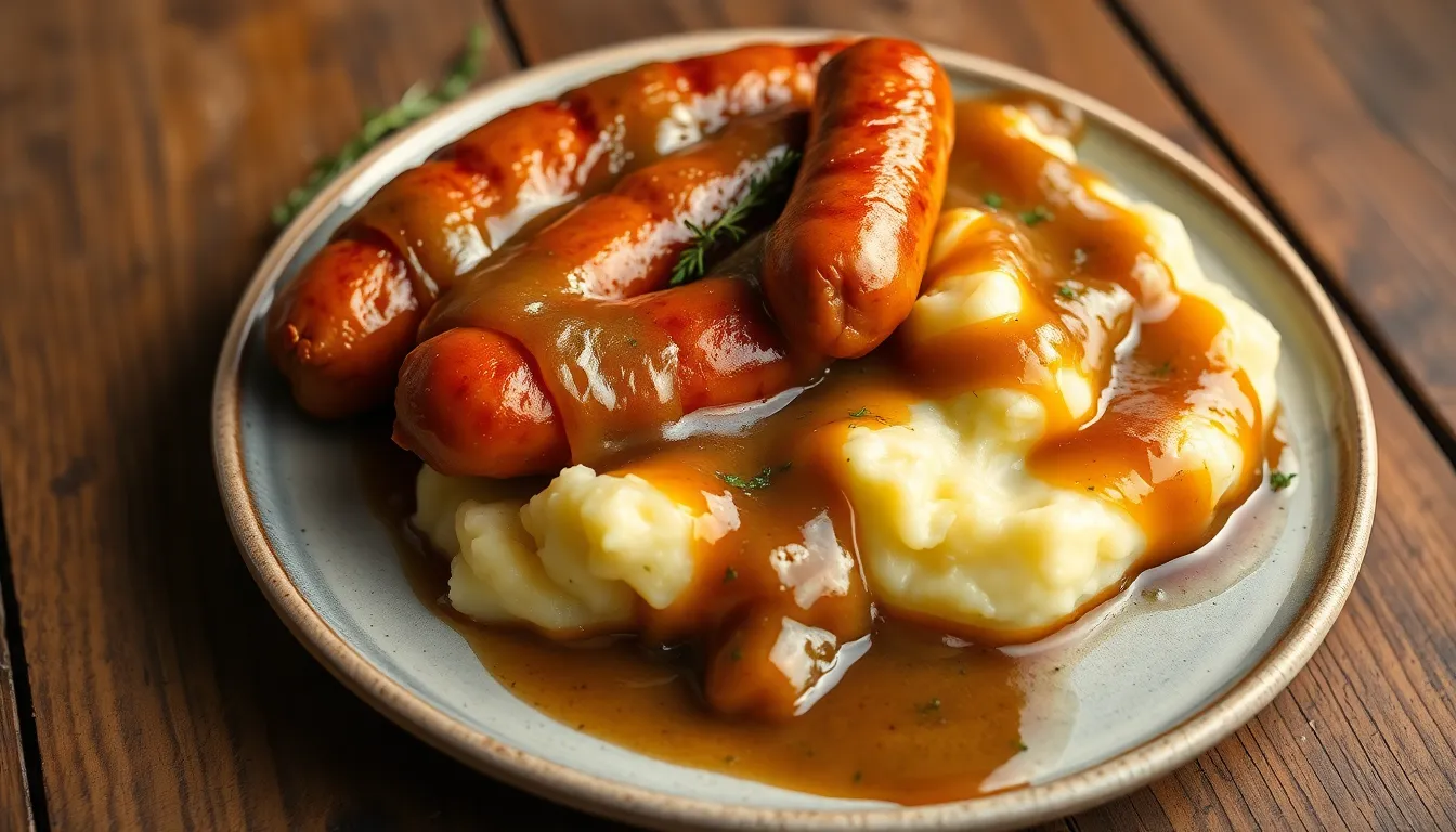 You now have everything you need to create an authentic bangers and mash that rivals any British pub. This hearty dish proves that simple ingredients can deliver extraordinary comfort food when prepared with care and attention to detail.
