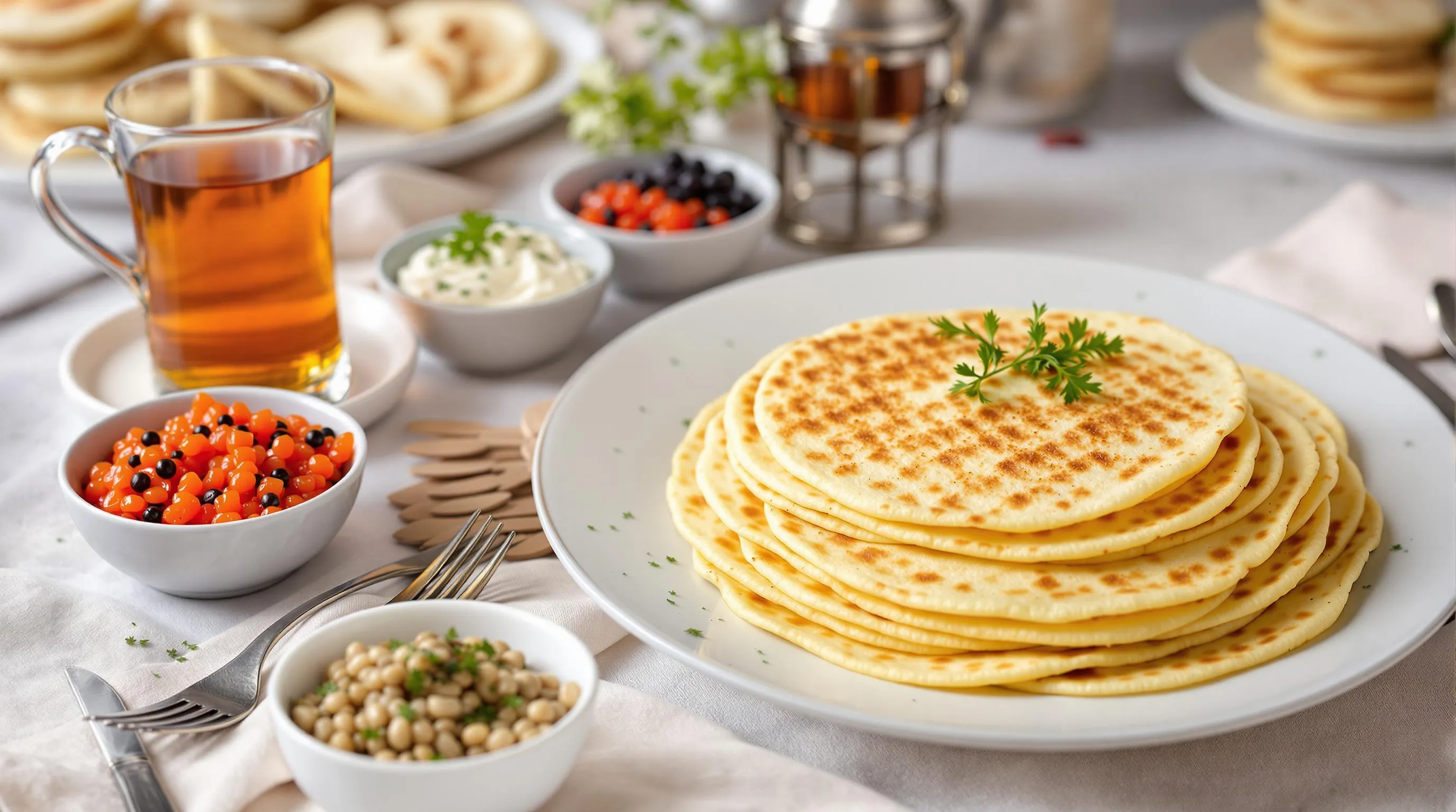 Traditional Russian hosting etiquette dictates that you should prepare the first blini for each guest according to their preference. This hospitable gesture demonstrates care and consideration for your visitors. Accompany the blini spread with hot tea served in glass cups with metal holders (podstakanniki) for an authentic Russian dining experience.