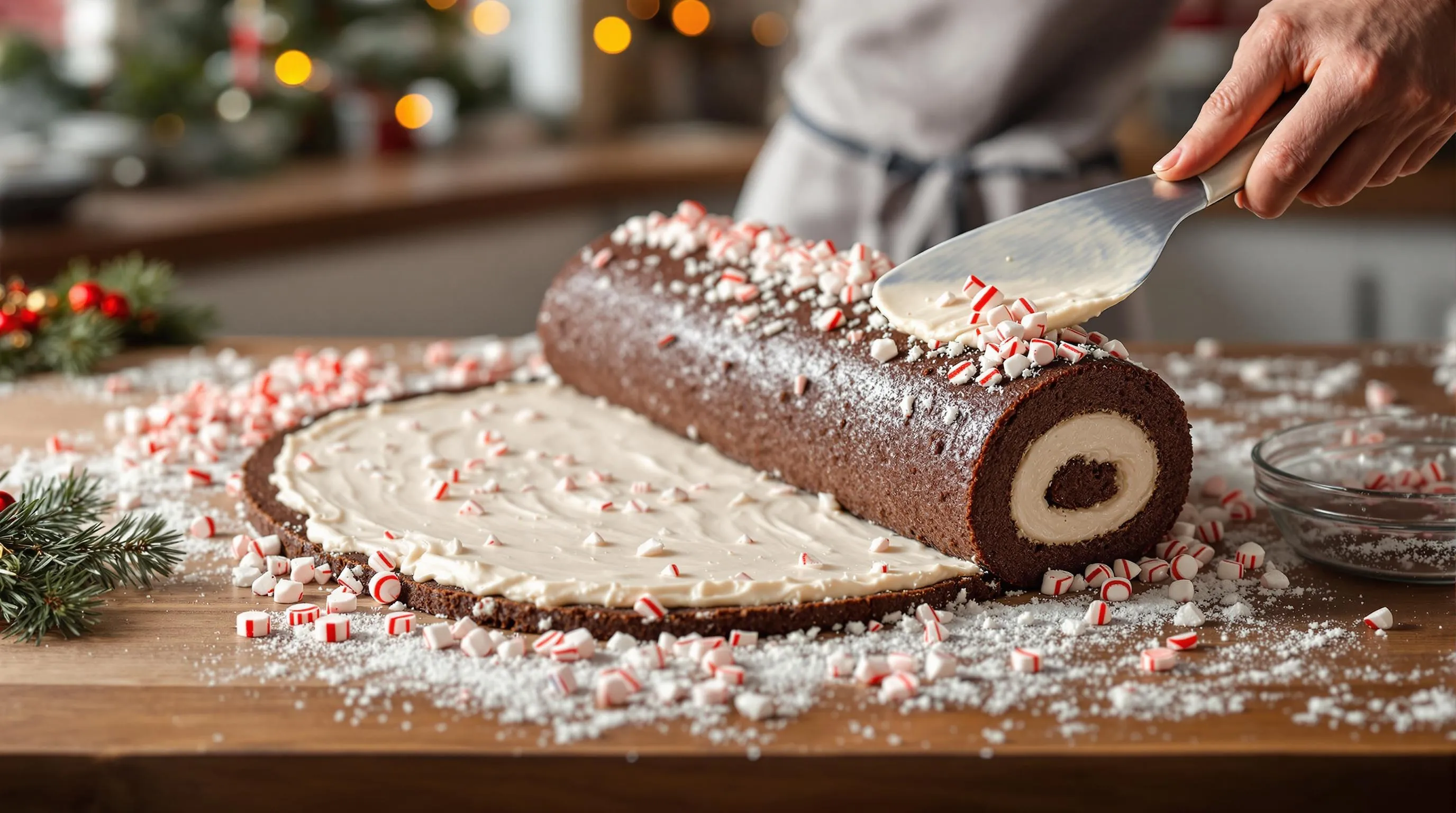 Decorating Your Peppermint Roll Cake