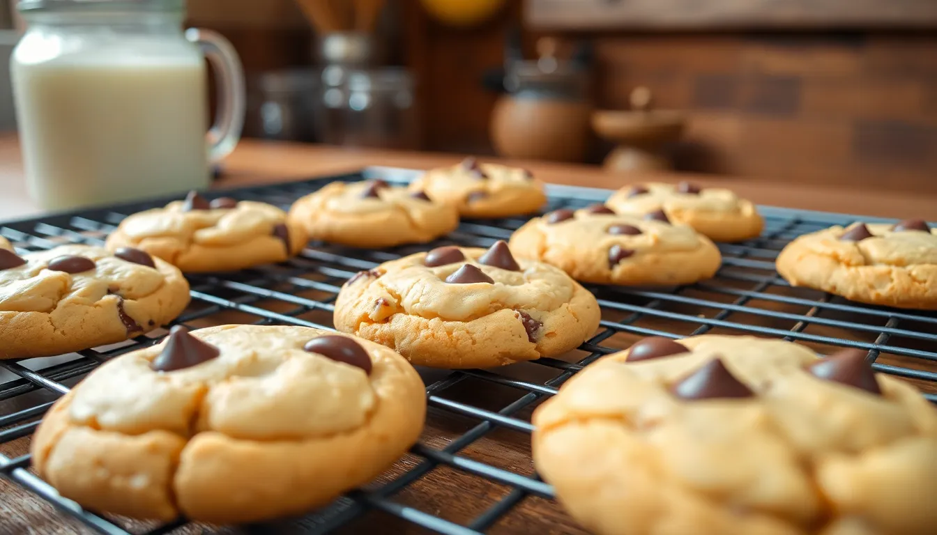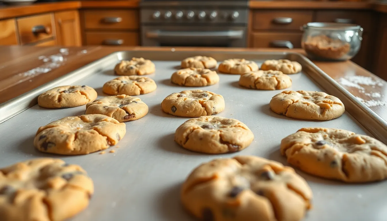 Bake for 18-22 minutes, rotating pans halfway through baking time for even browning. The cookies are done when edges appear golden brown while centers remain slightly soft and pale.