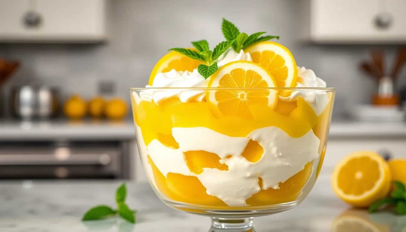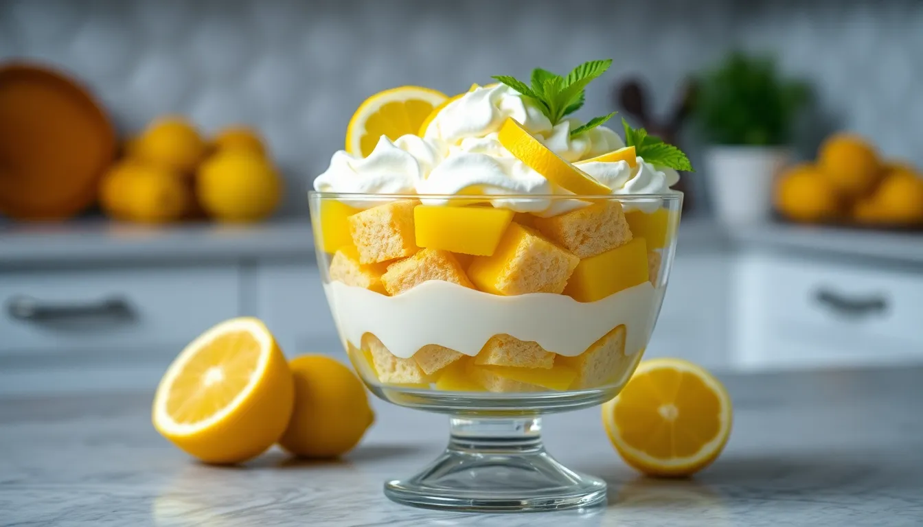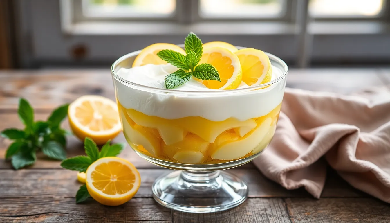 Dust the top with powdered sugar using a fine-mesh sieve. Garnish with fresh lemon slices and mint leaves if desired. Refrigerate the assembled trifle for at least 4 hours or overnight to allow the flavors to meld and the layers to set properly.