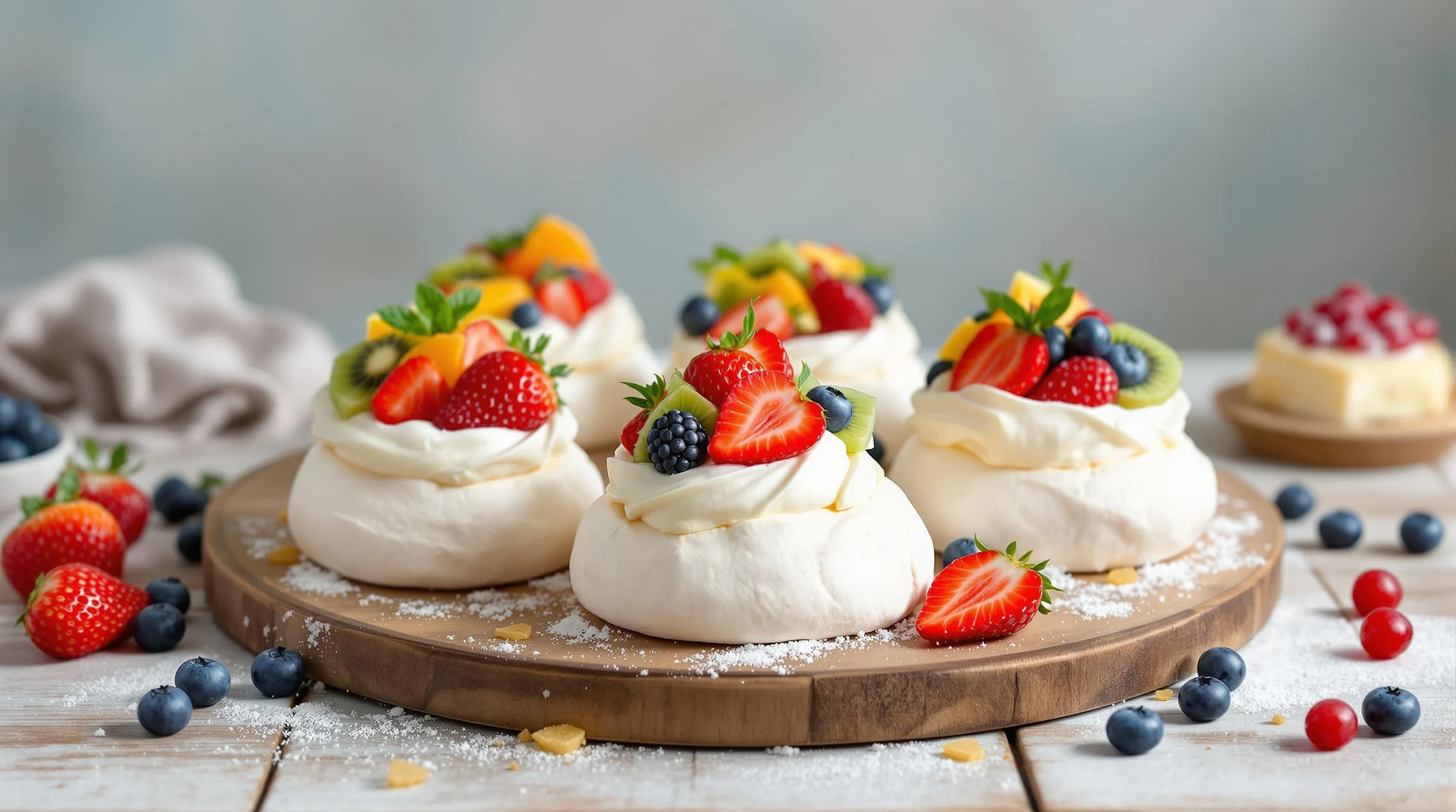 Fresh whipped cream creates the ideal foundation for your mini pavlova toppings. Start with 1 cup of heavy whipping cream that’s been thoroughly chilled for optimal volume. Add 2 tablespoons of powdered sugar and 1 teaspoon of pure vanilla extract for a subtle sweetness that complements rather than competes with the meringue. Whip the mixture until soft peaks form—avoid over-whipping as you want a billowy texture that gently settles into the meringue crater. The cream should hold its shape while remaining cloud-like and spreadable. For a tangy variation that cuts through the sweetness of the meringue, fold in 2 tablespoons of sour cream or Greek yogurt after whipping. This addition creates a more complex flavor profile that sophisticated palates will appreciate.