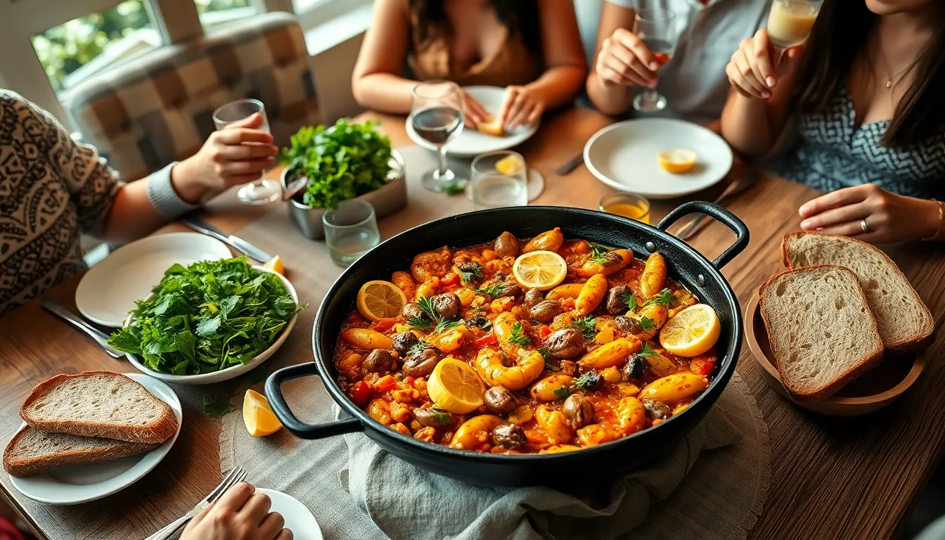 Timing your service creates the optimal dining experience. Announce dinner 5 minutes before the paella finishes resting so guests can gather around the table. This anticipation builds excitement while ensuring the dish reaches the table at peak temperature and texture.