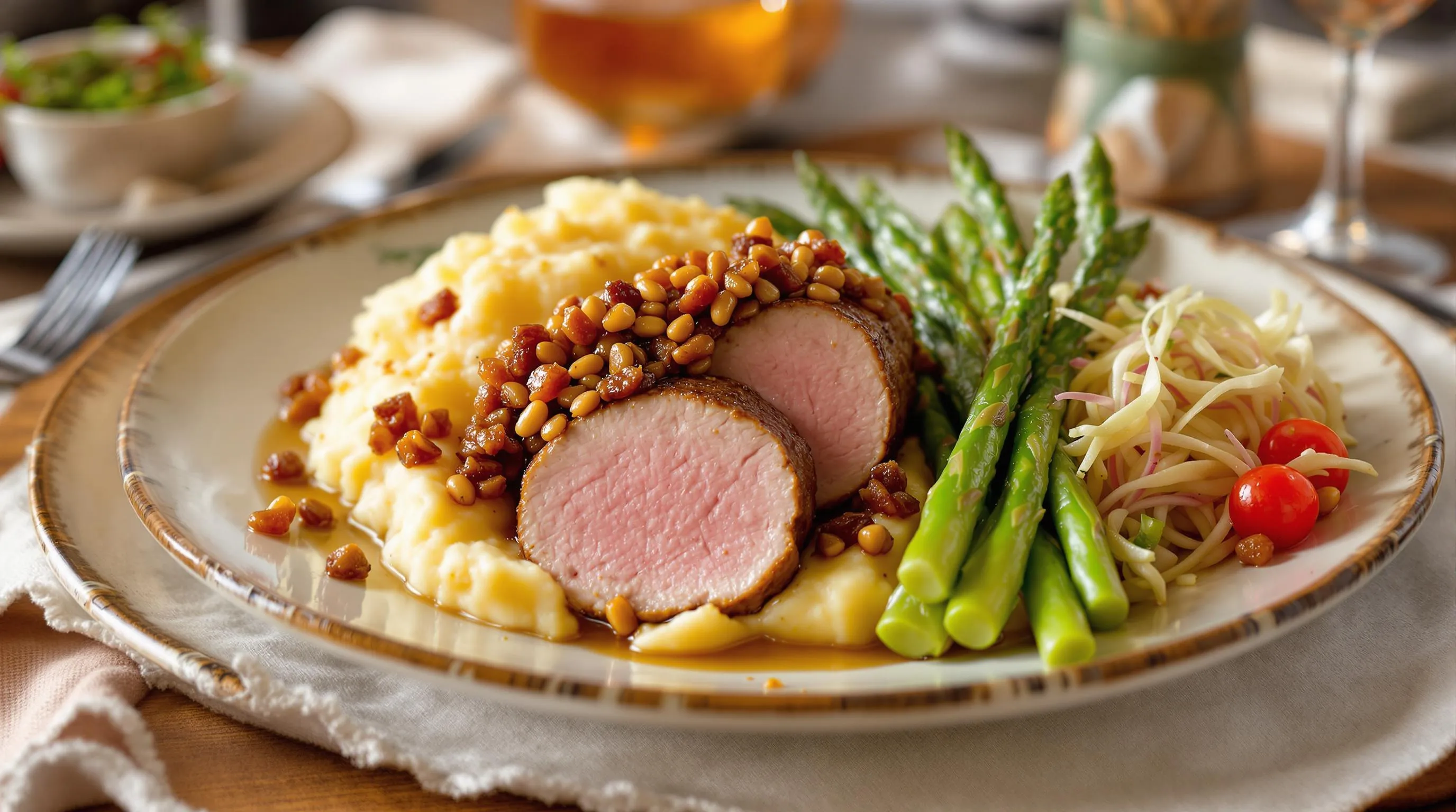 Beer lovers should consider a Belgian-style ale with its complex fruity undertones and slight spice notes that mirror the dish’s flavor profile. The maltiness provides a nice contrast to the pine nuts’ toasty qualities without overwhelming the tender pork.