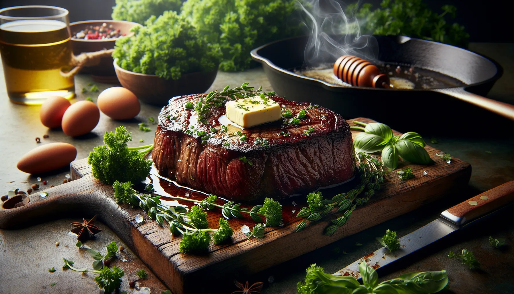 Fresh herbs and aromatics transform a simple seared steak into a restaurant-quality experience. Garlic releases fragrant compounds when heated in butter while thyme and rosemary infuse the meat with earthy notes during the basting process.