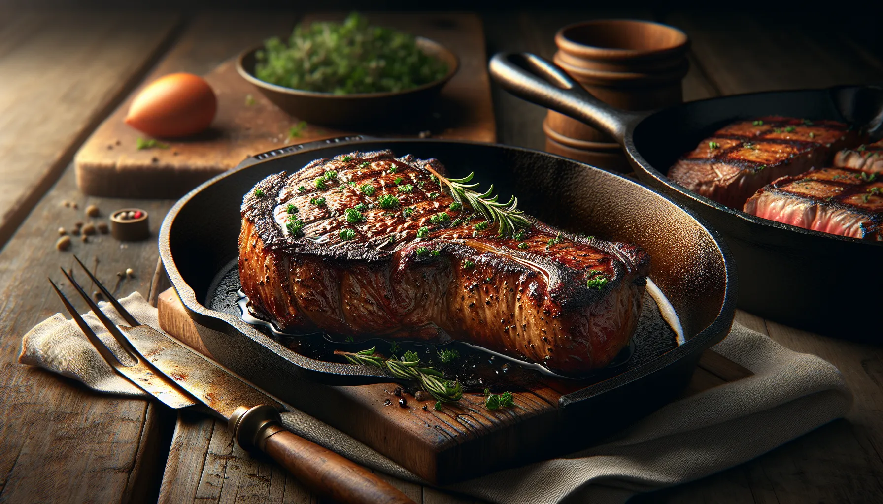 You can prepare several components of your skillet steak recipe in advance to streamline the cooking process and ensure perfect results. Season your steaks with coarse kosher salt and freshly ground black pepper up to 24 hours before cooking. Wrap the seasoned steaks individually in plastic wrap and refrigerate them until ready to use.
