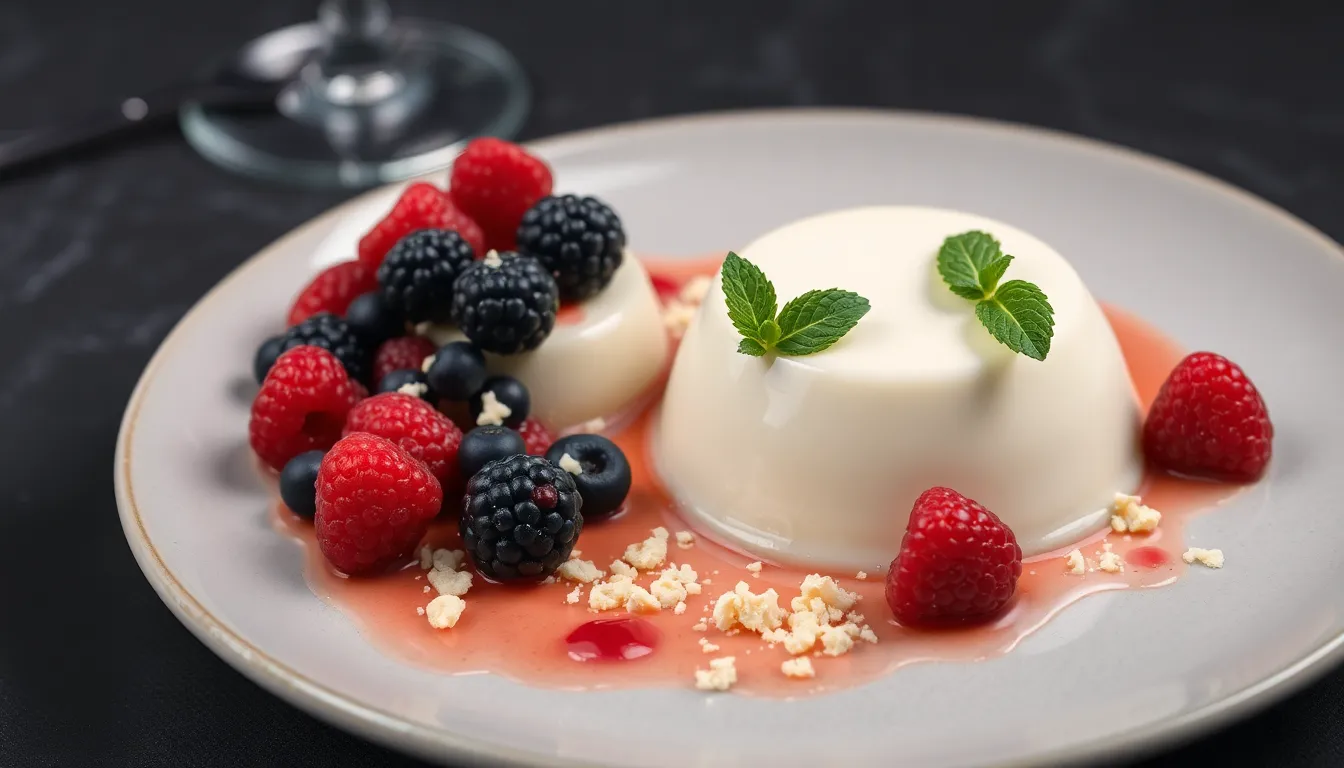 Choose plates that complement the dessert’s elegant nature. White or clear glass plates showcase the panna cotta’s creamy color while dark plates create dramatic contrast for photography.